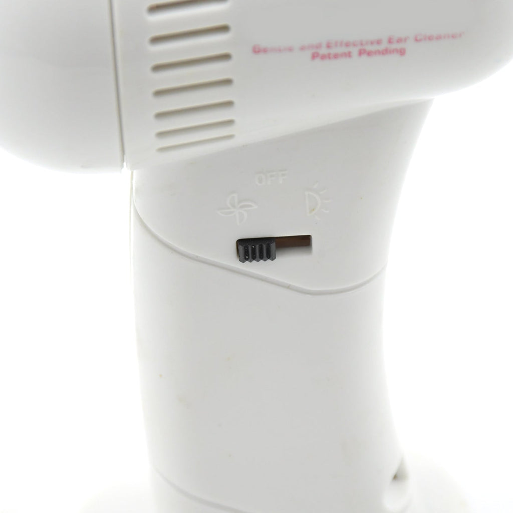 • Gentle suction draws dirt particles and water from ear, safety guard prevents tip from entering too far.