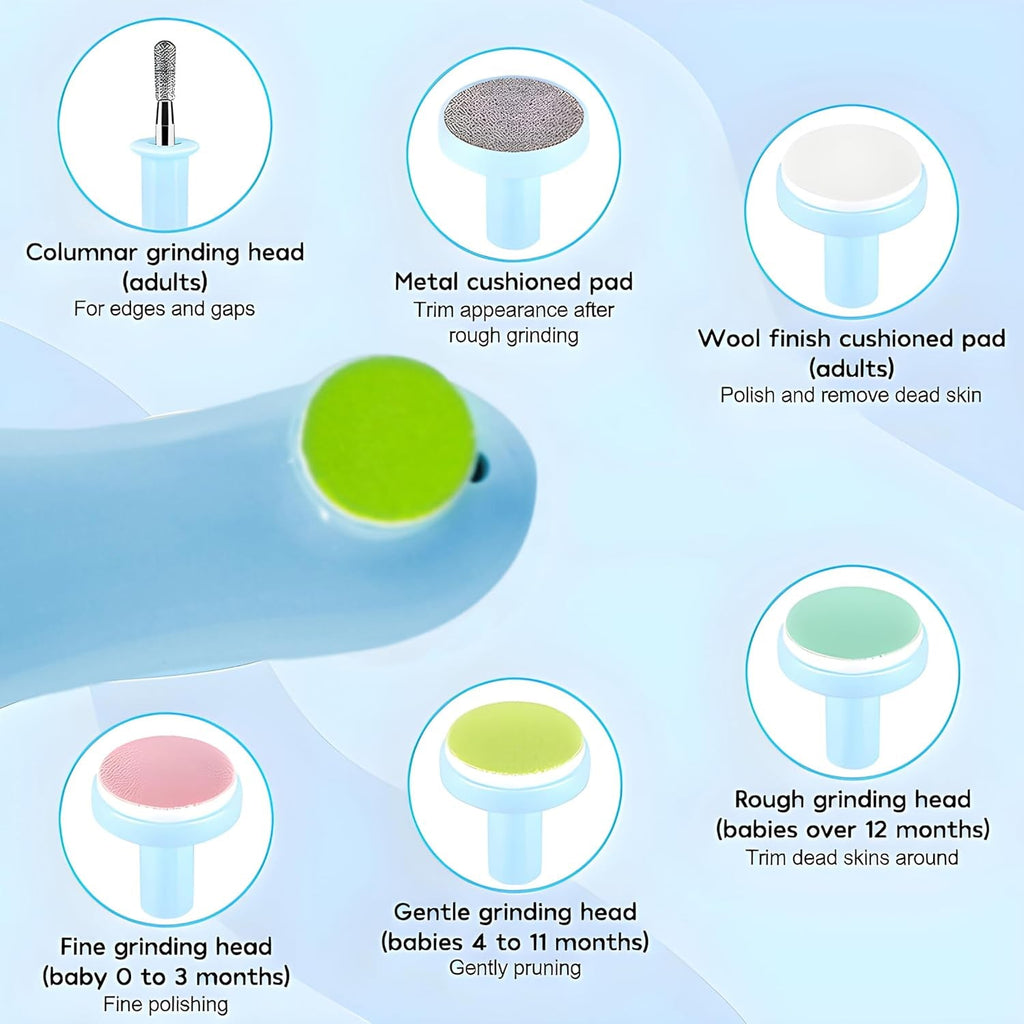 Baby Nail Trimmer | Electric & Safe Baby Nail Clippers | 6 Grinding Heads for Newborn Toddler or Adults Toes and Fingernails | Effective Baby Manicure Tools (Multi Color / 1 Pc / Battery not included)