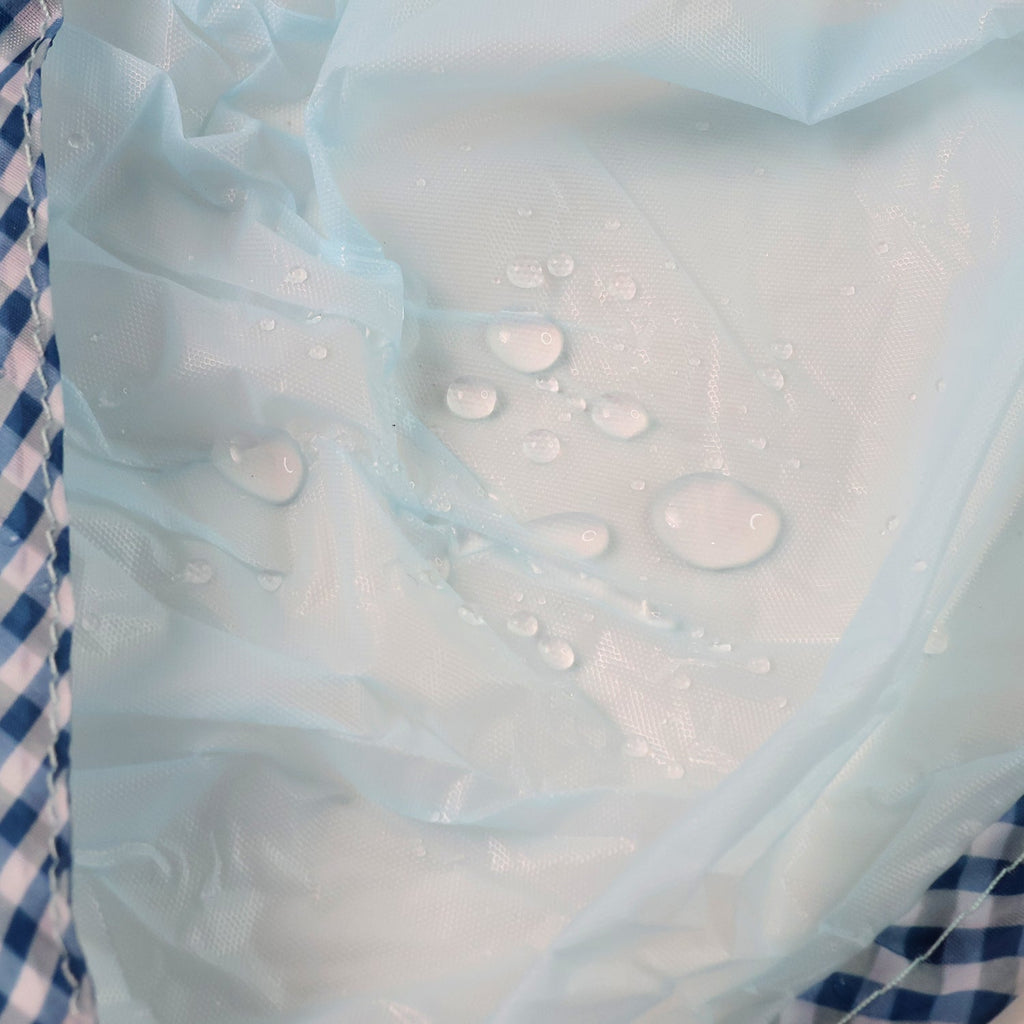 • Material Class: Lightweight plastic film with fabric edging and neck loop