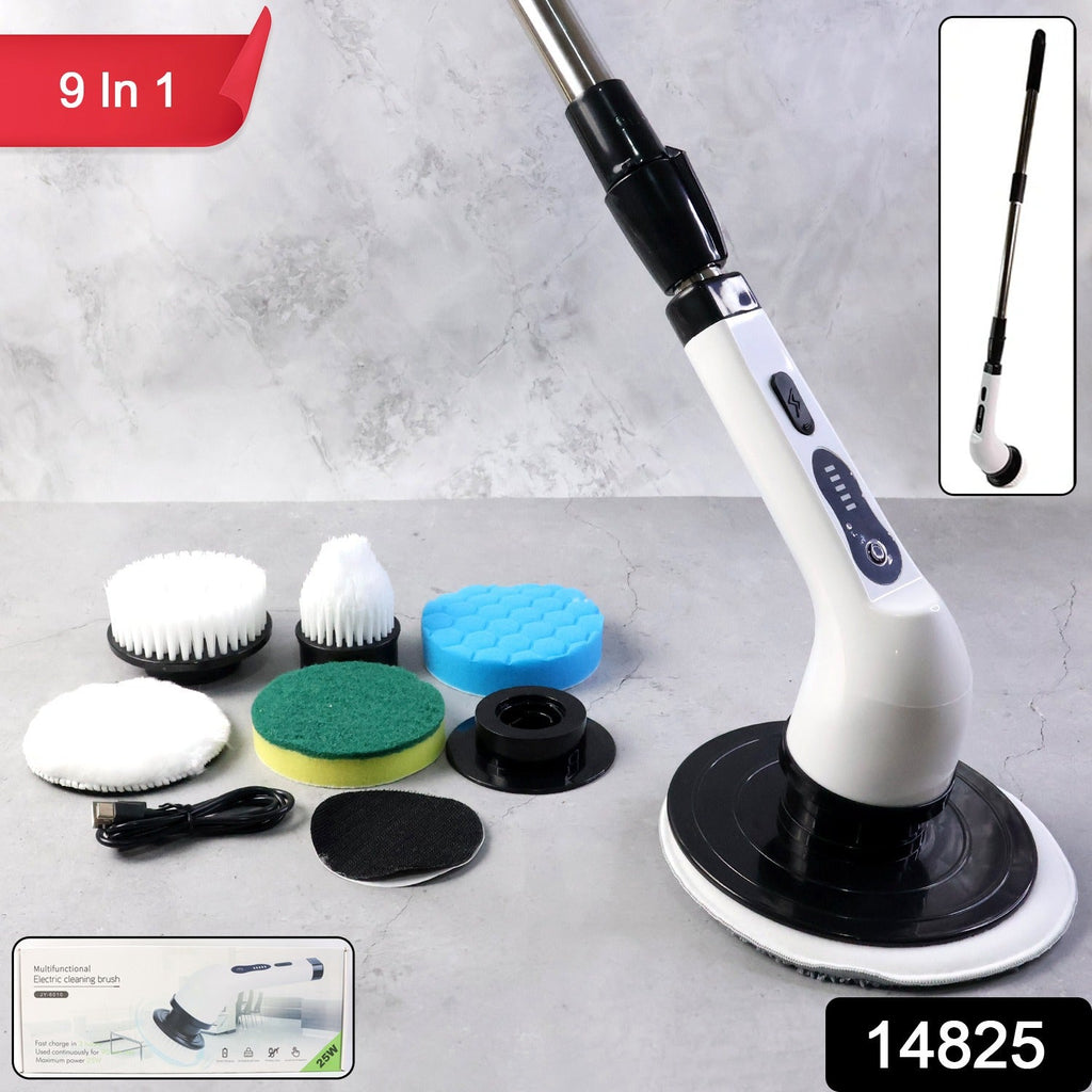 9 In 1 Rechargeable Electric Spin Scrubber with Telescopic Handle – Multi-Head Power Cleaning Brush for Bathroom, Kitchen Tiles, Floors, and Car Detailing (Complete Set)