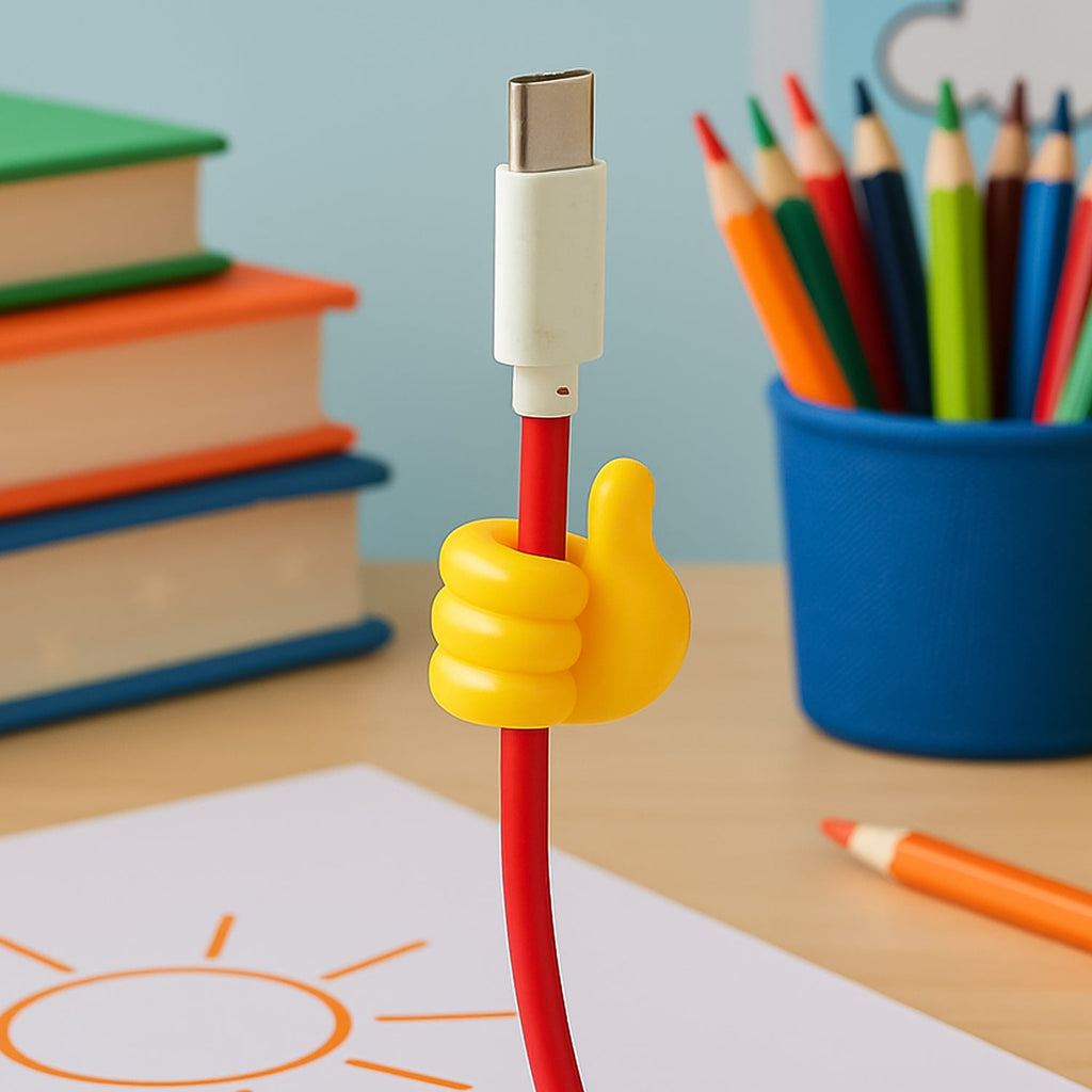 • This cable holder has a fun thumbs-up design that conveniently grips the cord