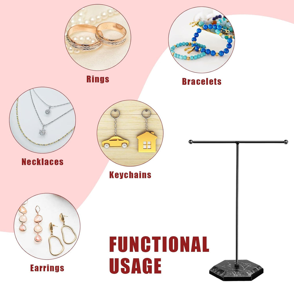 • Sufficient Quantity: 1 sets jewelry organizer stand for you to use and replace, including 1 pieces metal T-Shape Holder and 1 pieces marble plywood bases, satisfying your various needs, you can put them in different places to display your jewelry