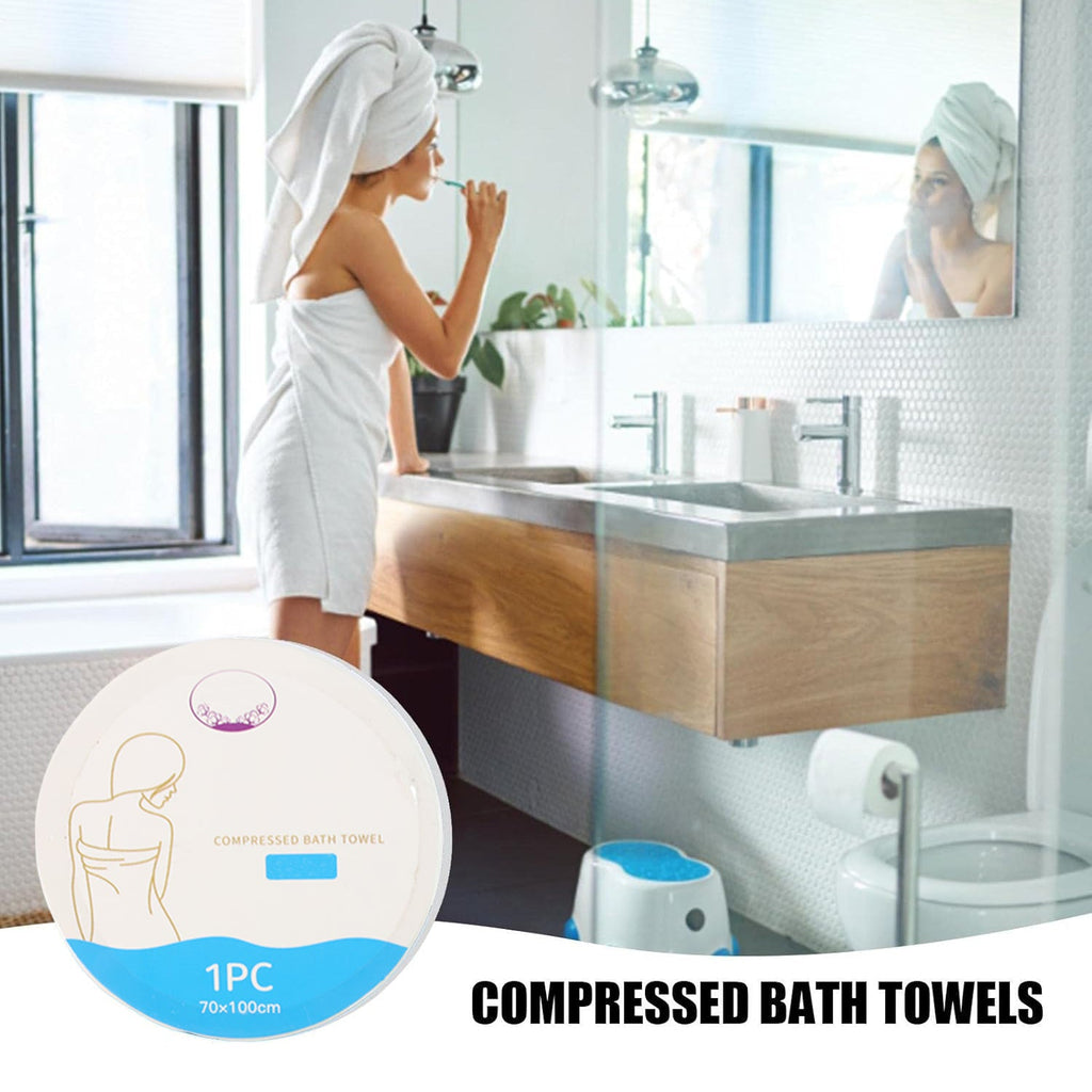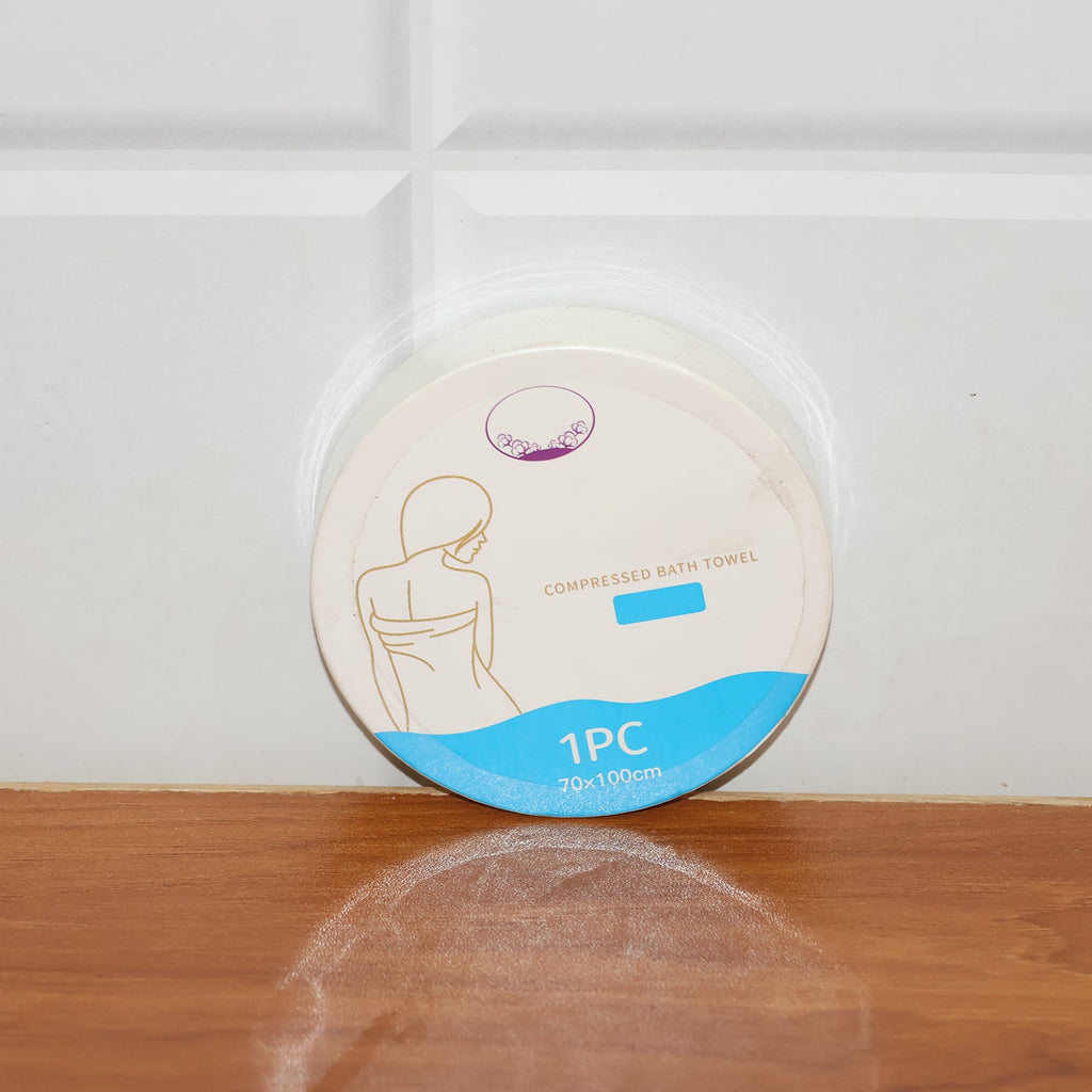 Enjoy a fresh, full-size towel anywhere with this compact compressed bath towel. Sealed in a neat puck, it expands instantly when moistened, giving you a soft, absorbent sheet for quick baths, face cleansing, gym freshen-ups, salon/spa treatments, or guest use. The lint-light fabric feels gentle on skin and dries fast after use, making it practical for daily hygiene as well as travel kits and emergency bags. Single-piece packing helps keep it hygienic and easy to store in drawers, handbags, glove boxes, or backpacks.
