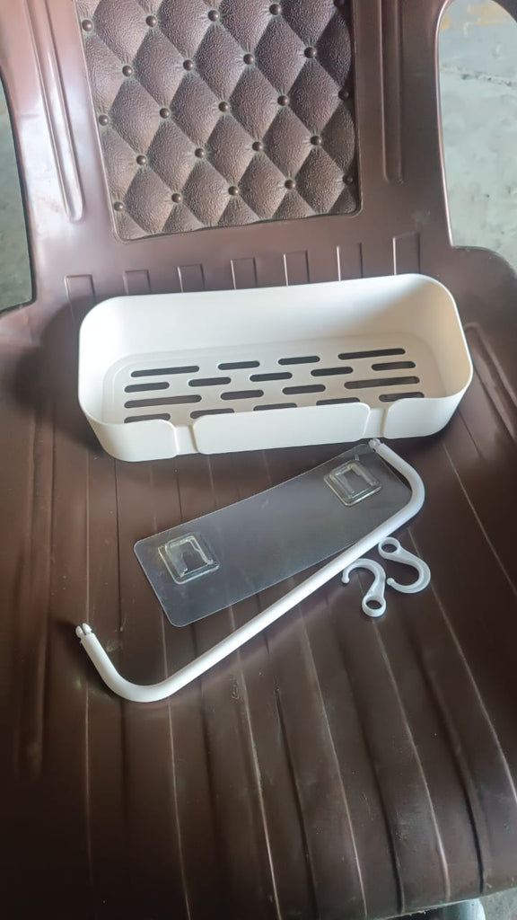 wall storage basket , organizer basket , bathroom rack , bathroom storage , kitchen organizer , self-adhesive basket , plastic rack set , soap & bottle holder
