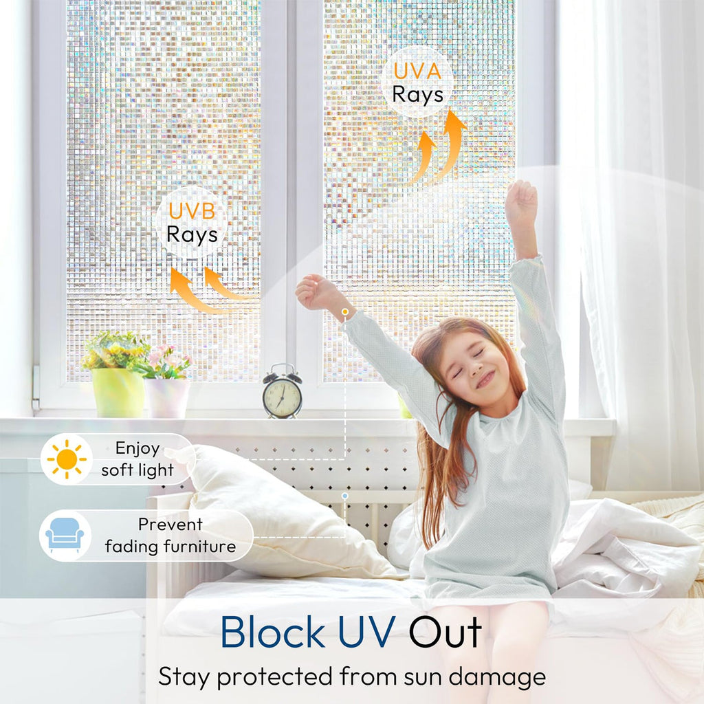 Transform your windows with this elegant Not-adhesive decorative window film featuring a stylish mosaic pattern. Measuring 45 cm x 3 meters, this frosted privacy glass sticker is designed to add beauty and functionality to any window or glass surface. It provides excellent privacy while allowing natural light to filter through, creating a bright yet private environment. The film also blocks harmful UV rays, reducing glare and protecting furniture from fading. With its static cling design, it can be applied without glue, making installation easy and residue-free. Perfect for home, office, and commercial spaces, this reusable and durable glass film is an eco-friendly alternative to curtains and blinds.
