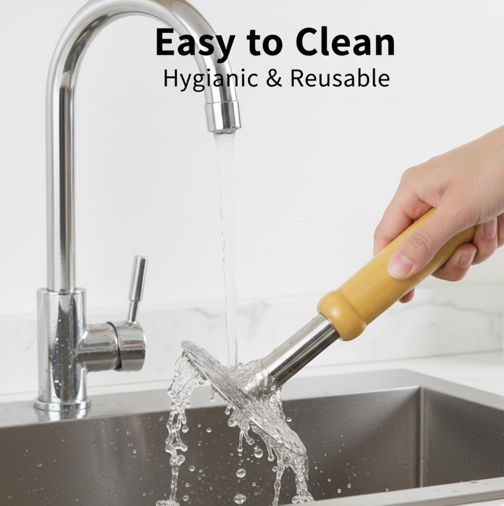 • Seamless and hygienic round mesh head; Dishwasher safe, easy to clean.