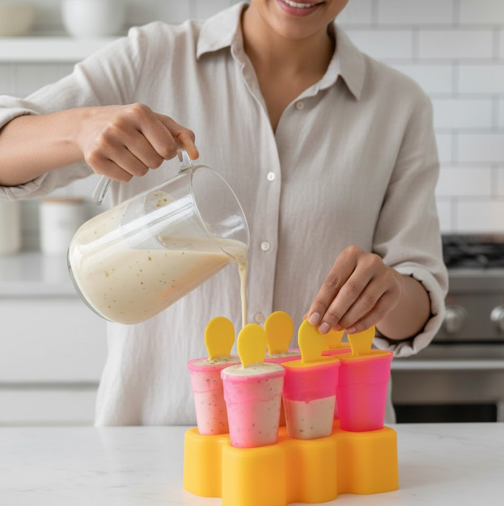 • You don't need an ice cream making machine to prepare frozen ice cream, it is very easy to making ice cream, just fill the moulds/maker with the required ingredients and keep it in the freezer