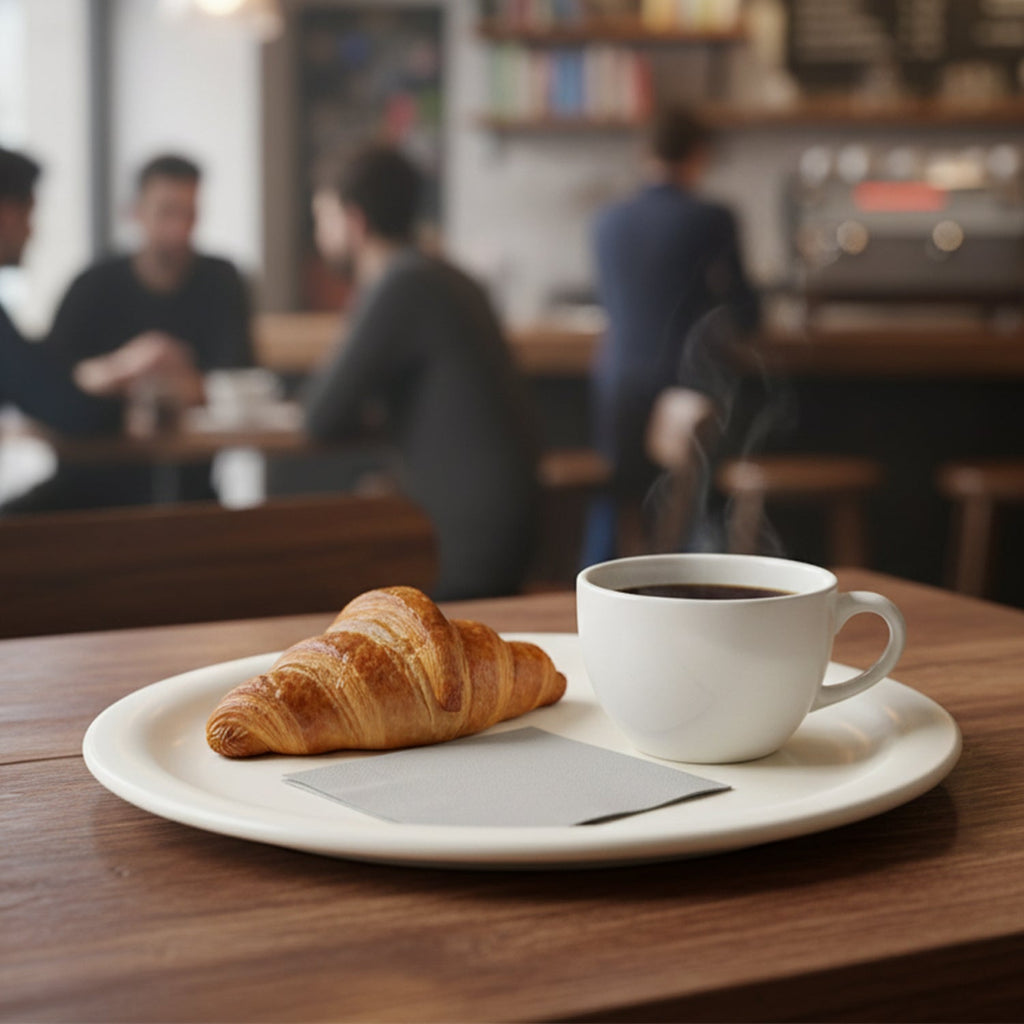 Wide, single-piece round plate ideal for serving meals, snacks, and teatime trays
