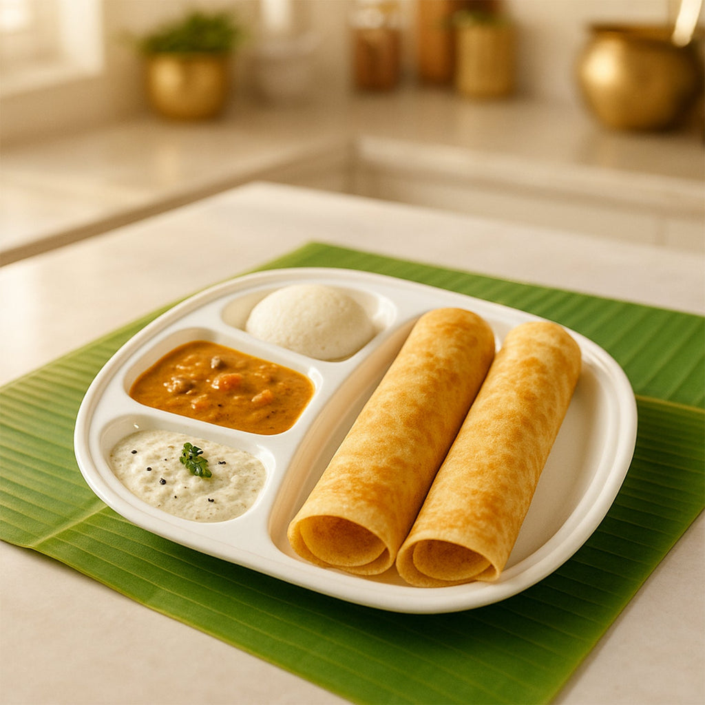• 4 smart compartments: 1 large main section + 3 smaller sections to keep curries, sides, and condiments separate.