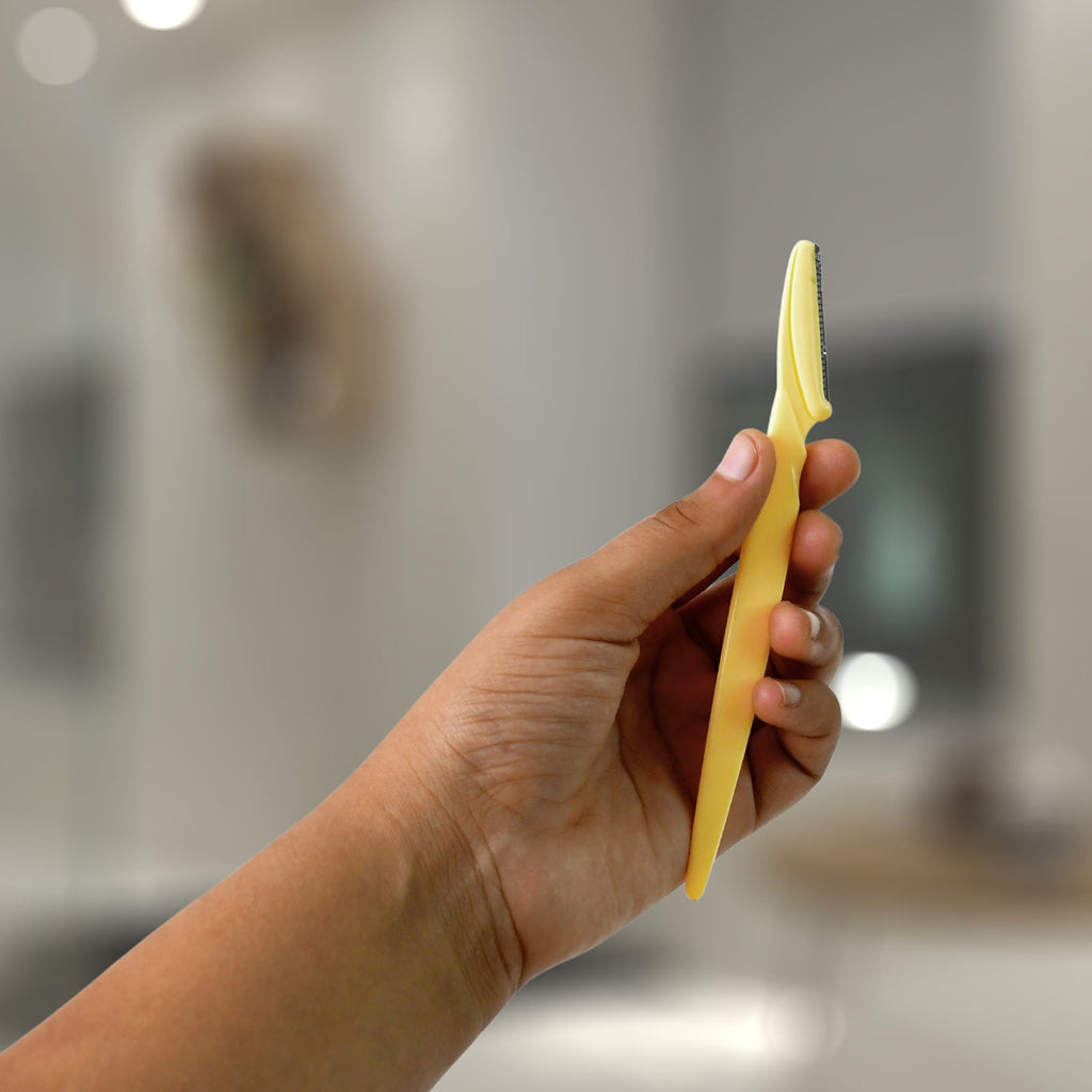 Achieve salon-like grooming at home with this Facial Eyebrow Razor and Trimmer. Specially designed for women, this handy beauty tool allows you to shape eyebrows, remove fine facial hair, and gently exfoliate dead skin. The sharp yet safe stainless-steel blade ensures precise trimming without causing cuts, irritation, or redness. Its lightweight and ergonomic handle provides firm grip and smooth control, making it easy to maneuver around delicate areas like eyebrows, upper lips, and peach fuzz on the cheeks. Compact and travel-friendly, this eyebrow razor is an essential personal grooming tool for quick touch-ups and flawless beauty maintenance.