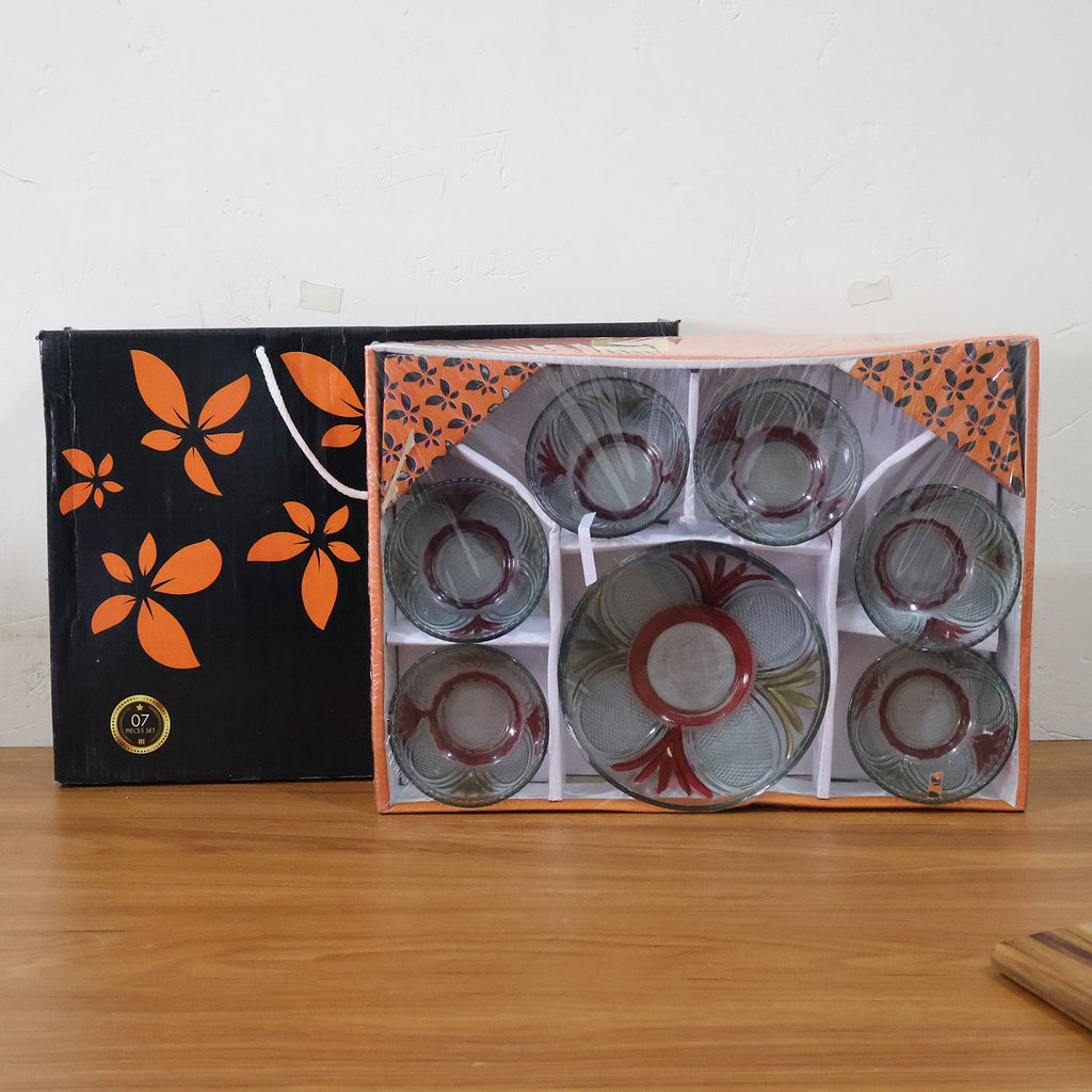 8234 Rose glass Multipurpose Pudding / Dessert / Ice Cream Bowl Set for Home use, Home & Kitchen Serving Bowl for Sundae, Sweets, Snacks, Fruit, Pudding, Nuts or Dip, Serving Bowls 6 Medium & 1 Big Bowl (Set of 7 pc)