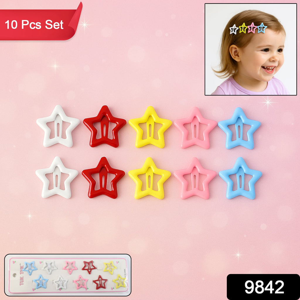 Metal Printed Star Shape Hair Clips Barrettes for Kids Teens Women Hair Clips for Girls Multi-design Multicolour (10 Pcs Set)