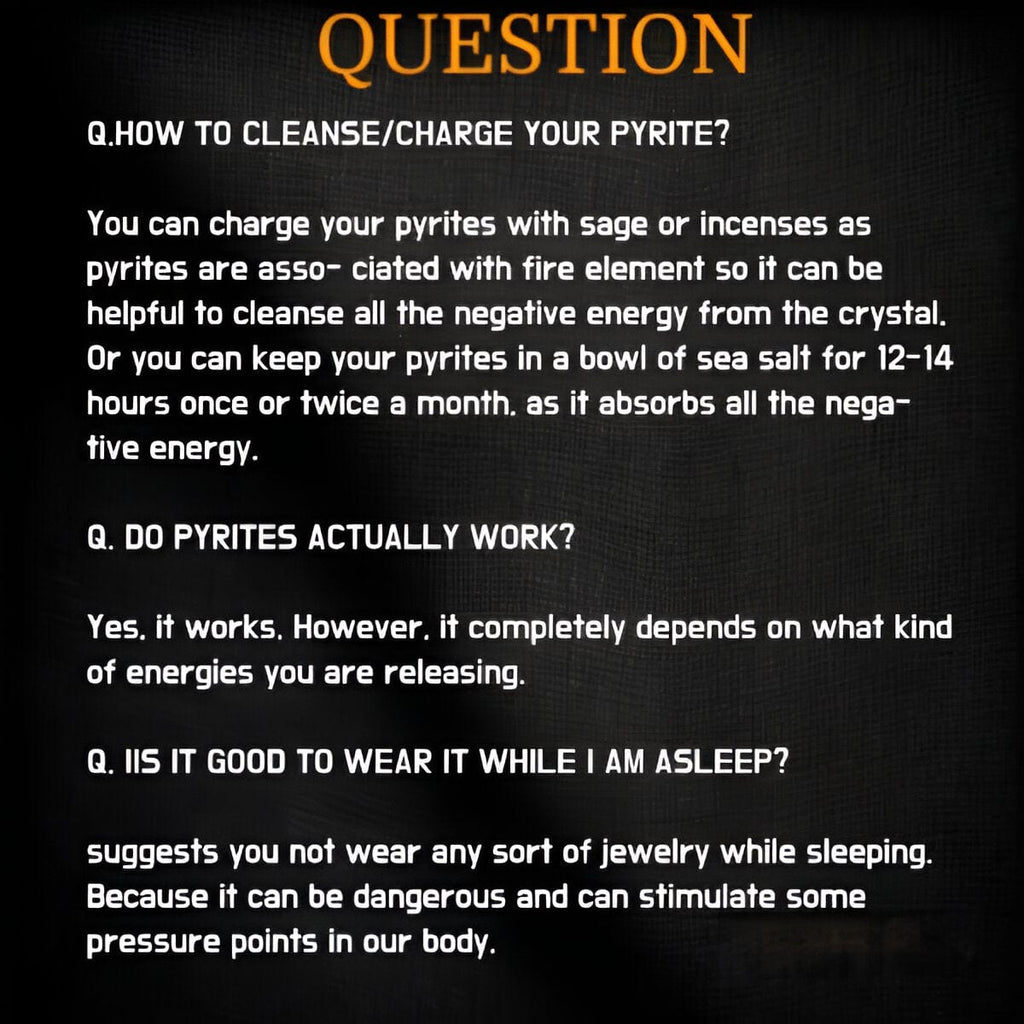 Receive your own unique, raw certified Pyrite stone. Every crystal comes with a guide on how to use, charge, and set intentions. Each stone is unique in formation, weight, and appearance.